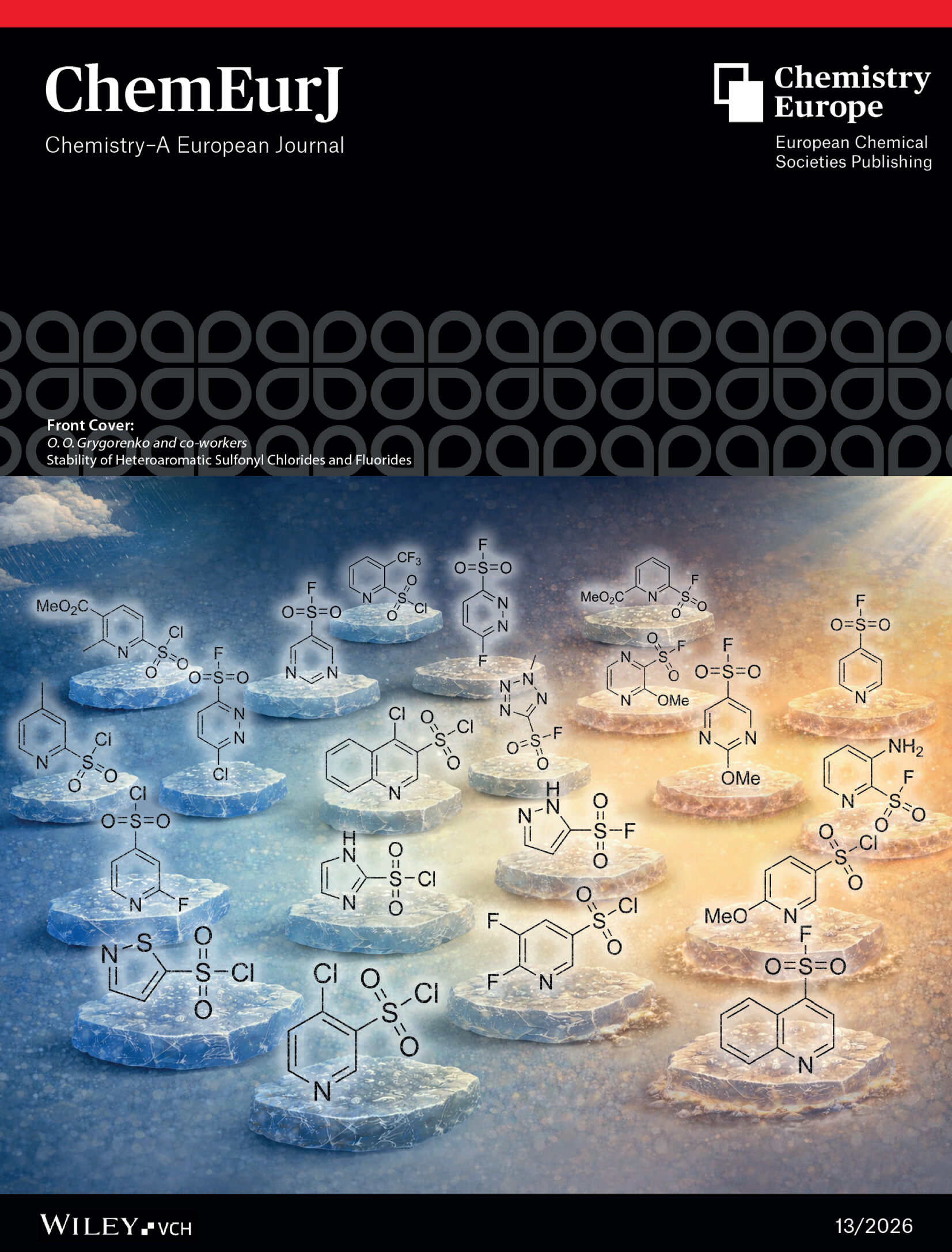 Shevchuk, O. I.; Vashchenko, B. V.; Doroshenko, I. O.; Stepannikova, K. O.; Hys, V. Yu.; Karpenko, O. V.; Kozachenko, O. P.; Cherepakha, A. Yu.; Kozytskyi, A.; Tolmachova, K. A.; Zhersh, S.; Tolmachov, A. O.; Grygorenko, O. O. Stability of heteroaromatic sulfonyl chlorides and fluorides.  Chem. Eur. J. 202632(13), e70739. DOI: 10.1002/chem.70739.